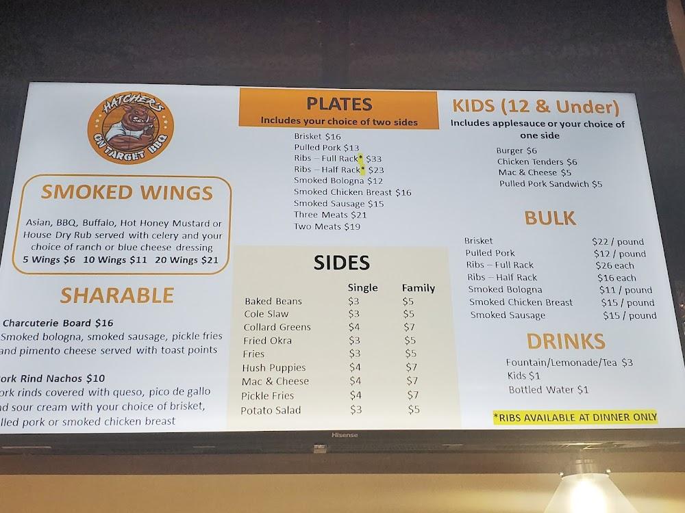 The menu at Hatcher's On Target BBQ is a celebration of BBQ traditions. Starters like fried pickles prepare you for the main course. Hand-held delights like brisket sandwiches and chicken sandwiches showcase the skill behind the grill. The sides are just as remarkable, featuring classics such as mac and cheese, baked beans, and coleslaw. Guests rave about the variety and quality of each dish.